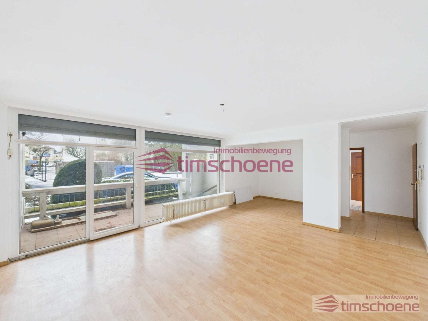 - Das große Wohnzimmer besticht durch eine beeindruckende Fensterfläche, die für eine helle und freundliche Atmosphäre sorgt. Von hier aus haben Sie direkten Zugang zum großzügigen Balkon, der zum Entspannen und Genießen der frischen Luft einlädt.