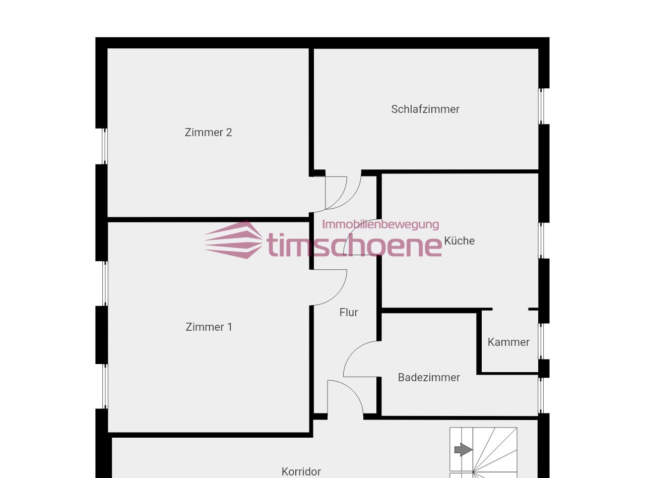 Die Raumaufteilung ist durchdacht: Zwei gemütliche Schlafzimmer, ein einladendes Wohnzimmer, eine separate Küche sowie ein praktischer Abstellraum bieten hohen Wohnkomfort. Das Bad ist mit einer Badewanne, WC und einem Waschbecken ausgestattet – ideal für entspannte Momente nach einem langen Tag.